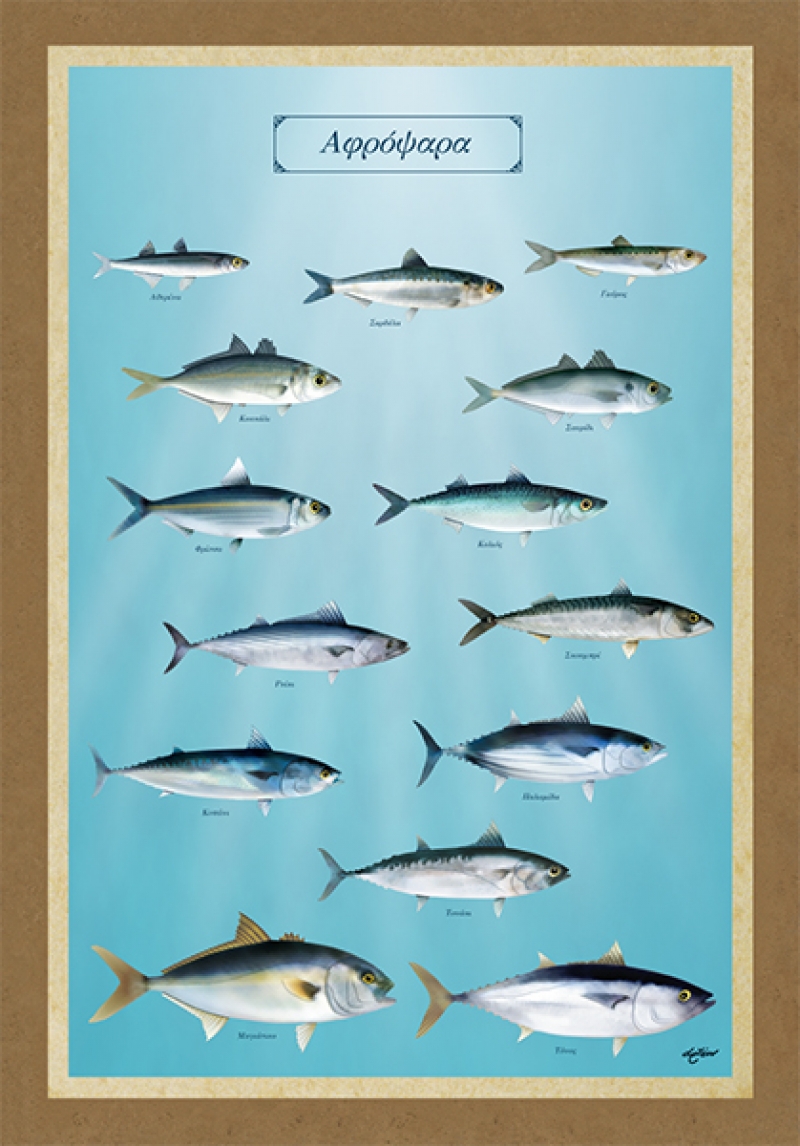 Aνακαλύψτε τώρα τη μαγεία των ψαριών των θαλασσών μας μέσα από τις μοναδικές εικονογραφήσεις της Αρτέον Εκδοτικής, που δίνουν έμφαση στην προσωπικότητα, στα χαρακτηριστικά και την ιδιαιτερότητα του κάθε ψαριού. Επιλέξτε τον καμβά ή τους καμβάδες με τις οικογένειες ψαριών που αγαπάτε και διακοσμήστε τον κάθε σας χώρο με κάτι «ελληνικό». Όλες οι εικονογραφήσεις είναι ένα μέρος από την έκδοση της Αρτέον Εκδοτικής «Τα ψάρια του τόπου μας. Ένα ταξίδι στον κόσμο των ψαριών της θάλασσας και του πολιτισμού μας». Οι καμβάδες είναι εκτυπωμένοι σε εξαιρετικής ποιότητας υλικό, με μελάνια αντοχής, ώστε να αποδίδουν με τον καλύτερο τρόπο τα χρώματα και τις λεπτομέρειες της εικονογράφησης,, αλλά και να διατηρούν την ποιότητά τους στη διάρκεια του χρόνου. Όλοι οι καμβάδες έχουν επιπλέον εκτυπωμένο θέμα περιμετρικά ώστε να μπορούν να τελαρωθούν σωστά αν τοποθετηθούν σε κορνίζα ή σε ξύλινο τελάρο ζωγραφικής.